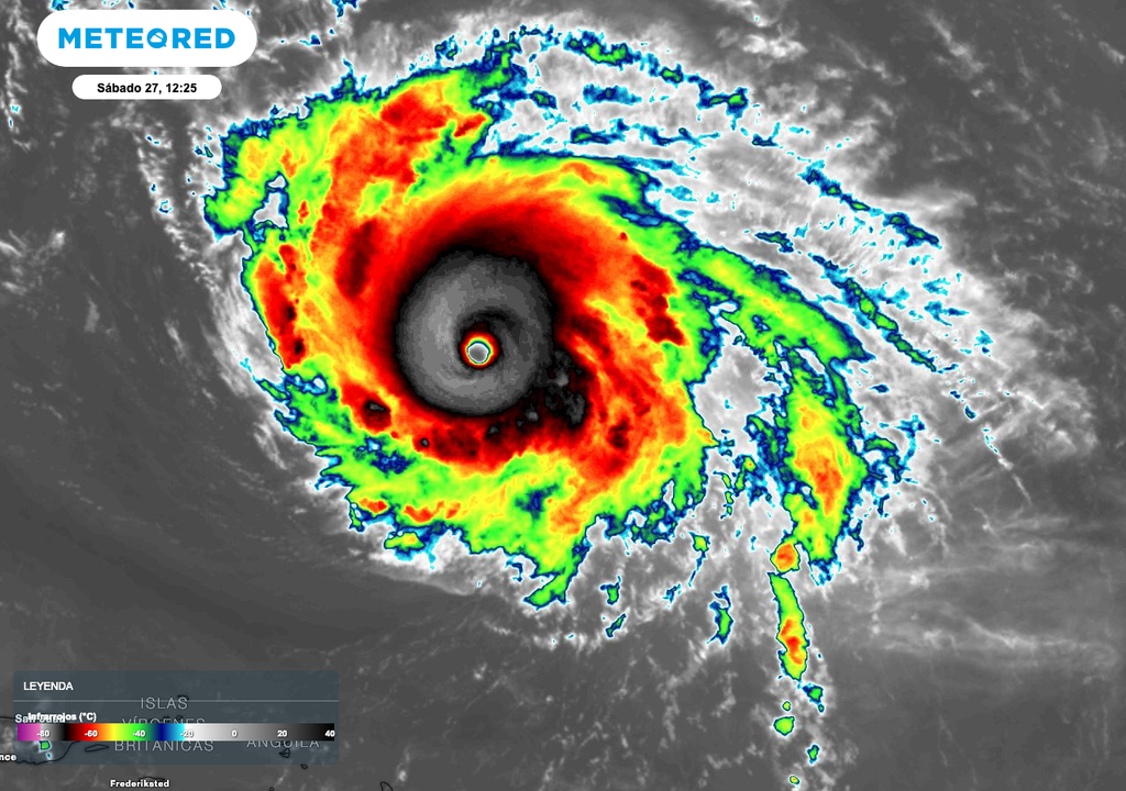 Se mueve al oeste-noroeste a 17 km/h; registra vientos máximos sostenidos de 260 km/h y rachas de 320 km/h, y con una presión mínima central de 925 milibares.
