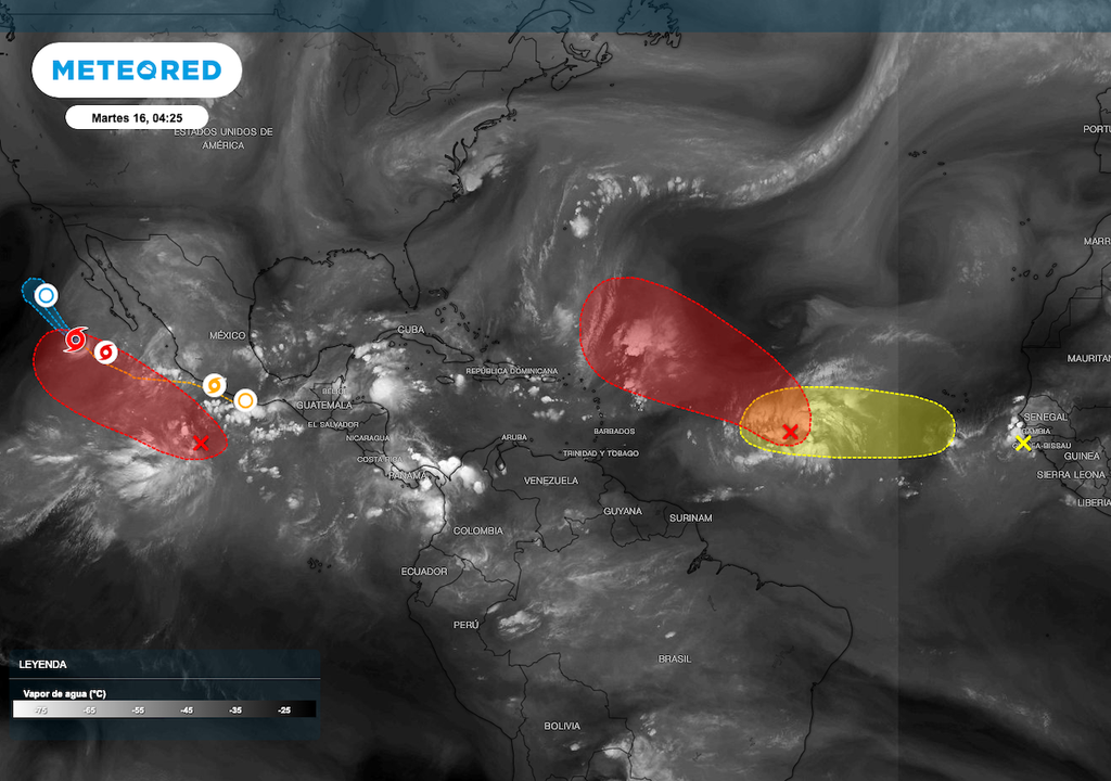 La temporada de huracanes se reactiva con la presencia de tres zonas de inestabilidad y la tormenta tropical Mario, que se mantiene en vigilancia dadas sus características y desplazamiento. Dos de estos sistemas favorecen aguaceros en México, te decimos cuales son.