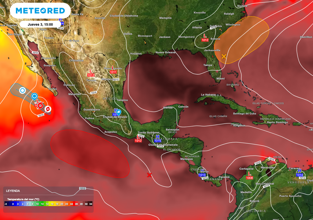 Por otro lado, en el Océano Atlántico que se ha mostrado relativamente calmado, este día registra un área de perturbación tropical, las cual se mantienen en vigilancia ya que esta favoreciendo aguaceros en el Este de Estado Unidos.